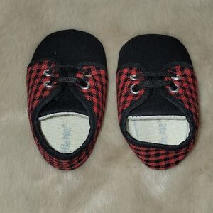 LITTLE ME BUFFALO PLAID SOFT BABY SHOES, SIZE 6-12 MONTHS