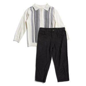LITTLE ME Grey Infant And Toddler Boys 2pc Intarsia Knit Polo Set