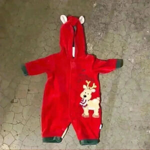 LITTLE ME RED VELOUR MY FIRST CHRISTMAS ONESIE LABELED 3 MONTHS