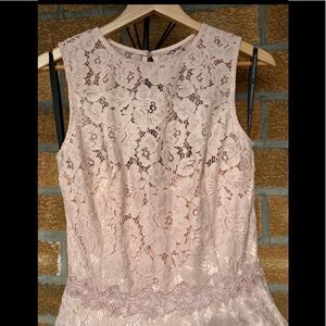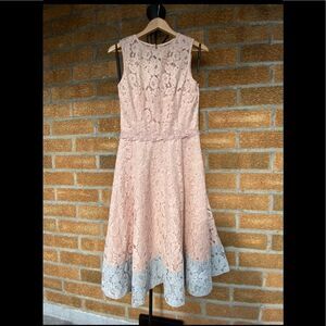 LITTLE MISTRESS TALL ALLOVER LACE MIDI PROM SKATER DRESS WITH CONTRAST HEM - PINK new without tags