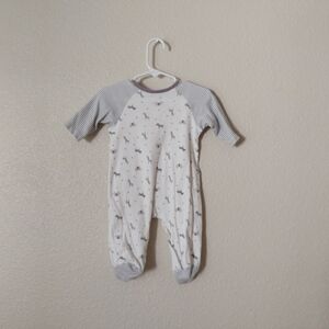 Cute little neutral colored safari animal footie pajamas with snaps. #zebra #elephant #giraffe