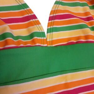 Great for the beach, pool party, travel or vacation, casual resortwear, that coastal summer look, any outdoor activity! This colorful striped swim suit works anywhere - Hawaii to California to Florida and all points in between!