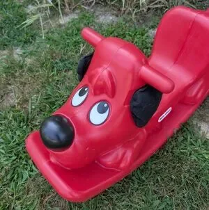 Delight your child with the Red Rocking Dog Toy. This vibrant red rocker is perfect for hours of fun and imaginative play. great for indoor or outdoor play. Built with heavy duty plastic