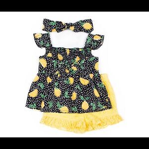 LITTLE LASS 24M Lemons with Disco Dots 3-piece Short Set