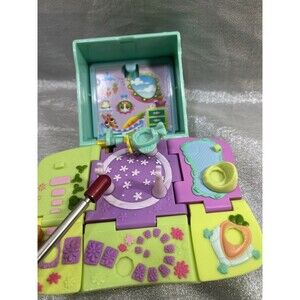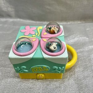 The product is a vintage 2006 Littlest Pet Shop fold up playset by Hasbro, featuring two bunnies and a larger cat. This set is part of the Littlest Pet Shop character family, known for its preschool toys and pretend play items. Made in China, this playset allows children to engage in imaginative play with adorable bunny and cat characters from the popular Littlest Pet Shop franchise.