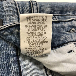 These LITZ BY UNIQ Distressed Flare Jeans in size 28/7 feature a solid blue color medium wash denim fabric. Made from a comfortable cotton blend, these high-rise jeans have a regular fit and a flared style, and undone hems, perfect for a bohemian look. With a button accent and a 5-pocket design, these stretchy jeans are easy to care for with machine washable instructions.