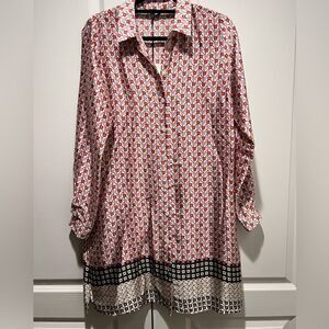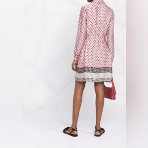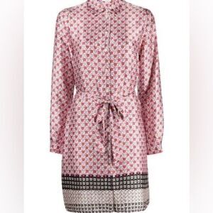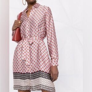 Multicolour geometric-patterned shirt dress from LIU JO featuring geometric print, classic collar, front button fastening, belted waist- Missing!!!!! long sleeves, buttoned cuffs and thigh-length.