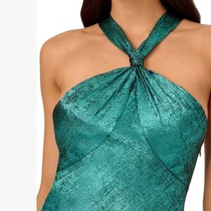 LIV FOSTER JADE Foil Chiffon Metallic Teal Halter Knotted Back Dress Size 2 NWT
