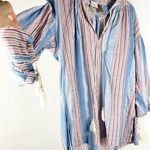 LIV - LOS ANGELES | 💗Striped Boho Drawstring Tassels Peasant Shirt Tunic