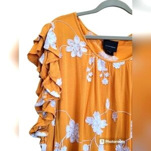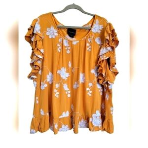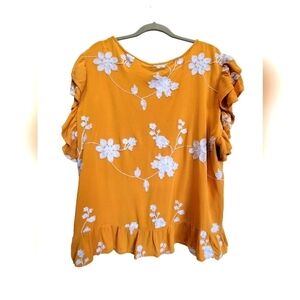 LIV Los Angeles 2X Embroidered Ruffles Short Sleeve Boho Blouse