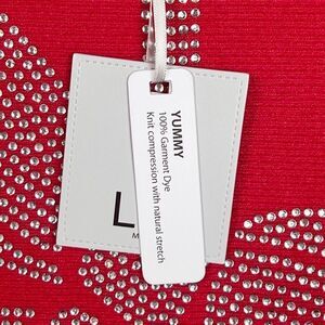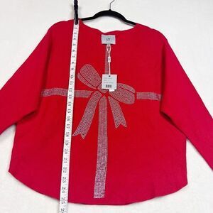 LIV Milano Deep Red Bow Rhinestone Embellished Sweater Dolman Sleeve Size Large NWT