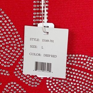 LIV Milano Deep Red Bow Rhinestone Embellished Sweater Dolman Sleeve Size L NWT