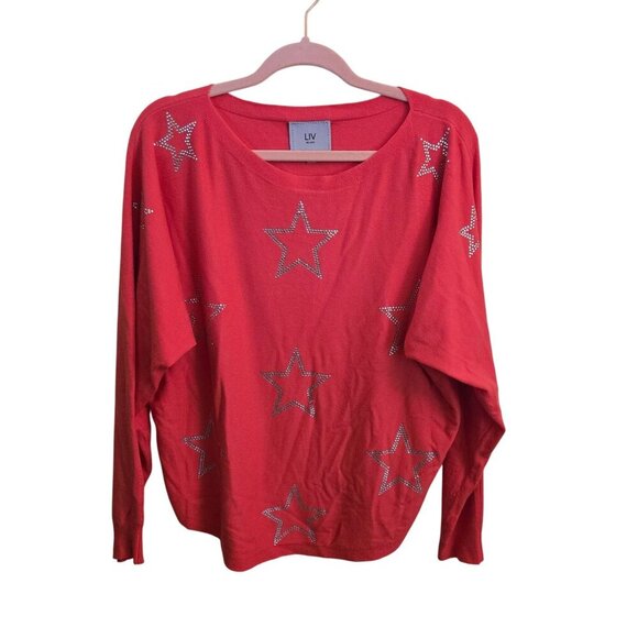 LIV Milano Dolman Sleeve Rhinestone Star Sweater Tomato Size L