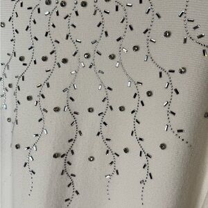 LIV Milano Embellished White Top Women’s Rhinestone Blouse Holiday Party