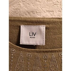 LIV Milano Pullover Sweater Olive Green Rhinestones Women’s XL Viscose Blend