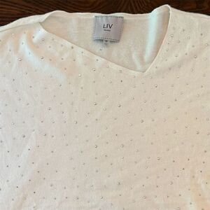 LIV Milano Women's V-Neck Rhinestone Pullover Sweater White Size M