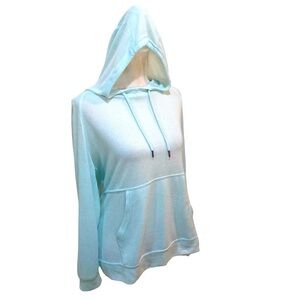 LIV Outdoor lightweight knit aqua hoodie kangaroo pocket size small