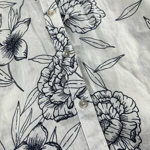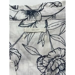LIV | Rachel Zoe Plus Size 2X 100% Linen White Navy Blue Floral Button Up Shirt