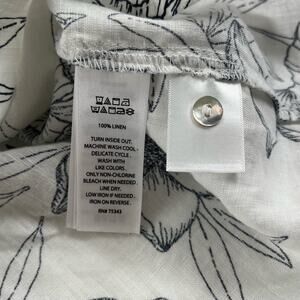 A Rachel Zoe white floral collared button down blouse made from 100% linen, estimated plus size 2X. Excellent preloved condition! The size tag is gone so the size is an estimate, check measurements to be sure. The pattern is like a dark blue nearly black color. Perfect breezy linen top for warm days!