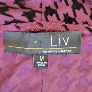 LIV by Habitat Clothes Burgundy Velvet Mesh Houndstooth Sheer Cowl Top Size M