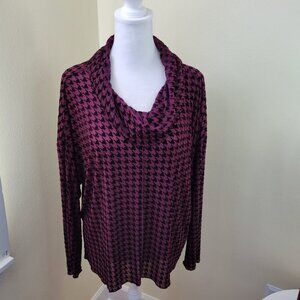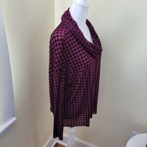 LIV by Habitat Clothes Burgundy Velvet Mesh Houndstooth Sheer Cowl Top Size M