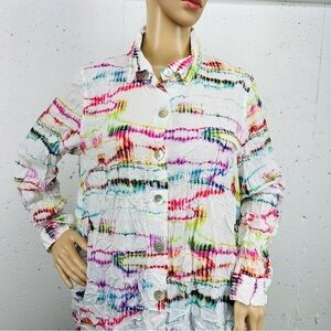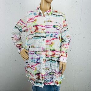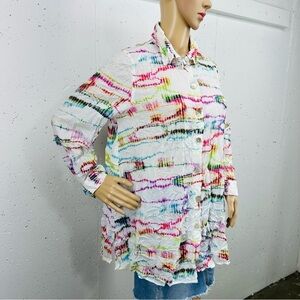 LIV by Habitat Clothes Size Small Rainbow Print Crimped Crepe Button Down Tunic
