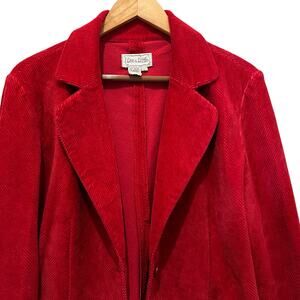 LIVE A LITTLE Corduroy Red Blazer Jacket Large One Button Crop Short Vtg Retro