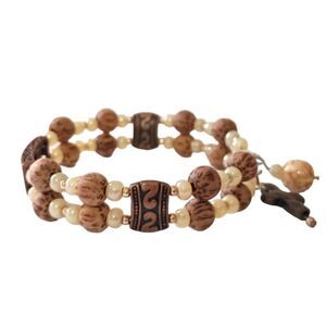 LIVE Beaded Bracelet Memory Wire Adjusts Bangle Cross Religious Inspirational. Condition is pre-owned. Beads appear to be wood and glass...not sure. It's made of memory wire and adjusts to fit a normal size wrist. Please see photos for detailed condition. Unsigned. Fits many aesthetics.