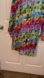 Abstract graffiti design with a mix of vibrant colors. Perfect for a bold statement alone or layered over your favorite outfit. Vibrant orange, pink, lavender blue and green semi-sheer polyester with collared neckline, double button cuffs, and a full button front. This shirt is approximately duster length, it would make a beautiful topper or swimsuit cover-up. Perfect for travel, cruising, and spring, and summer weather. In brand new condition, there is one run appearing on the front about 2 inches from the side seam, barely noticeable due to the busy print. See last photo for details. Bust 25” Hip 26” Length from back neck 36” Shirttail him, the center will be longer than the sides, no pockets and no slits.