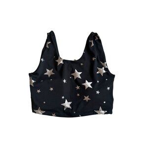 This stylish workout bra features a black and silver star design, perfect for energetic workouts or casual wear. Made for comfort and support, it will keep you feeling confident throughout any activity.