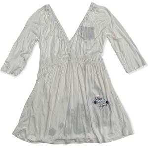 LIVE WITH LOVE BOHO Hippie Hipster Embroidered White Floral Long Top