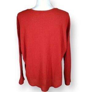 LIVE IN THE MOMENT BURNT ORANGE WAFFLE KNIT V-NECK SWEATER SZ.M EUC