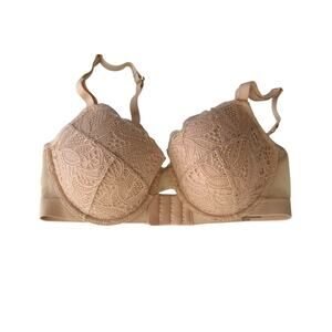 LIVELY Bra 34D Almond Tan Lace Push Up Underwire Convertible
