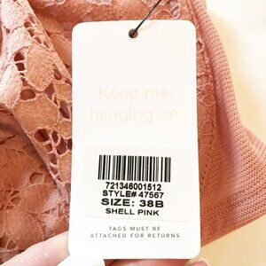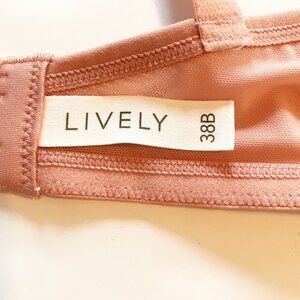 Lively Underwire unlined lace bra Shell Pink. New with tags, mesh lace cups, size 38B, clasp in back, adjustable straps, straps hook in back. Excellent condition, no flaws or defects. Smoke and pet free home.