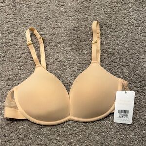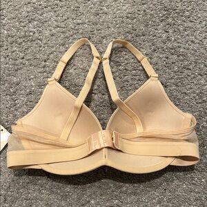 1. Tan wireless tshirt bra with mesh sides, clip to convert to racerback