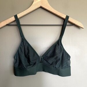LIVELY Stripe Mesh Bralette Emerald Green Size Small Wire Free Comfortable Comfy