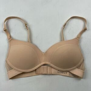 LIVELY The Mesh Trim No-Wire Padded Bra Nude J-Hook Racerback 32B