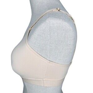 Women's Lively "The Spacer T-Shirt Bra", size 36D. In very good condition with minor wash wear (a small pull to microfiber cup overlay, see photo, no impact to wearability). I believe this colorway is called Toasted Almond, it is a creamy dark ivory shade. This t-shirt bra has soft cups lined with lightweight spacer foam for a flexible and lightweight fit that gives shape without bulk. Straps adjust in front and have a J-hook in back so the bra can be worn regular or crossback style. Back closure features three rows of three hooks.