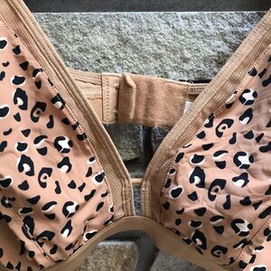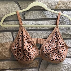 LIVELY Women's Leopard Print Mesh Trim Bralette - Camel Black Wireless 3 38D-DDD