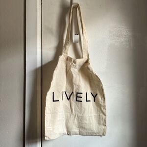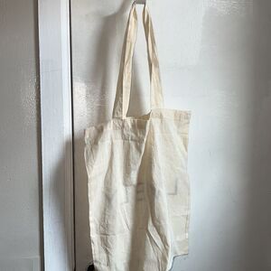 Lightweight cotton tote bag with black lettering. Measures 14” x 16” with a 12” strap drop. Excellent condition.