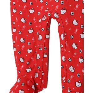 This red, buttoned sleep suit features Hello Kitty logos all over and built-in feet.