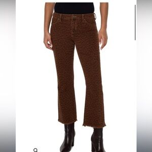 LIVERPOOL HANNAH CROP ANIMAL PRINT raw hem 27” FLARE jeans size 6/28 new