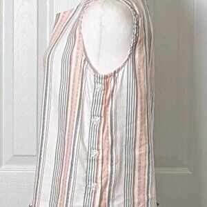 LIVERPOOL LA Women's Sleeveless Linen Blend Top Bouse Size S Multi Color Stripe