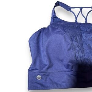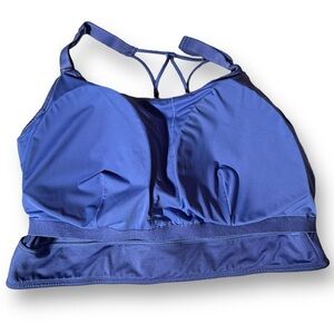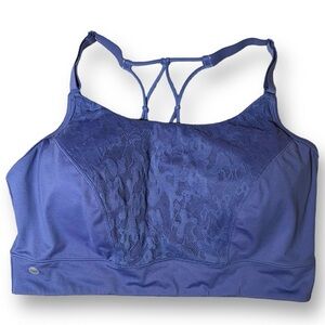 LIVI Active Wire Free Lane Bryant Low Impact Mesh Lace Inset Criss Cross Knot Back Molded Cup Support Sports Bra Violet Purple