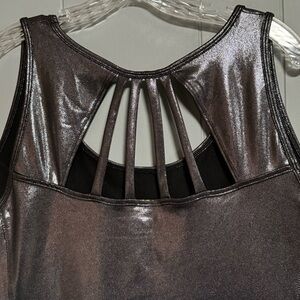 LIVI Active Shiny Dark Silver Pewter Metallic Tank Cage Cutout Back Size 22/24