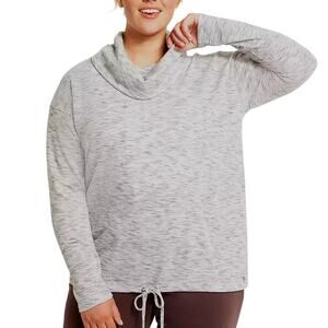 LIVI Cowl-Neck Textured Top Grey Space Dye Relaxed Sweatshirt Sz 22/24