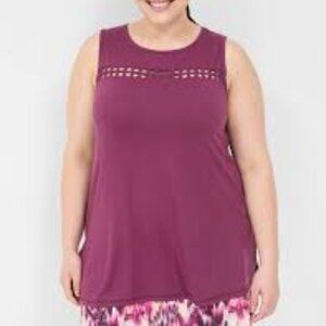 LIVI Lane Bryant Crew-Neck Dark Purple Macrame Tank Top Tunic Shirt Size 14/16