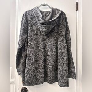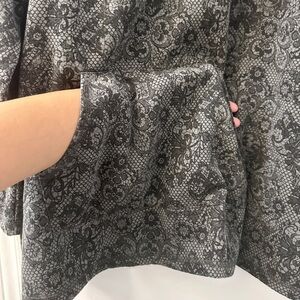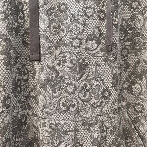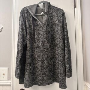 This LIVI women’s hoodie in size 22/24 offers both comfort and style, featuring a beautiful lace-inspired print in soft gray tones. Perfect for layering, this hoodie comes with an attached hood with adjustable drawstrings and a convenient kangaroo pocket. The relaxed fit and lightweight fabric ensure it’s comfortable for everyday wear, whether you’re lounging at home or out and about. The intricate lace print adds a bohemian flair, making this piece both functional and fashionable.