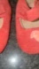 Size tag is interior all the way near toes - hard to see - heel to toe is 4 inches - 0-6 months