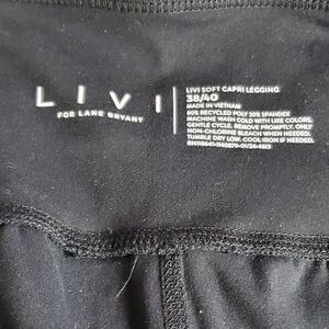 LIVI Lane Bryant 38/40 Capri Leggings Plus Size Soft Stretch Rainbow Bow Trim Bl